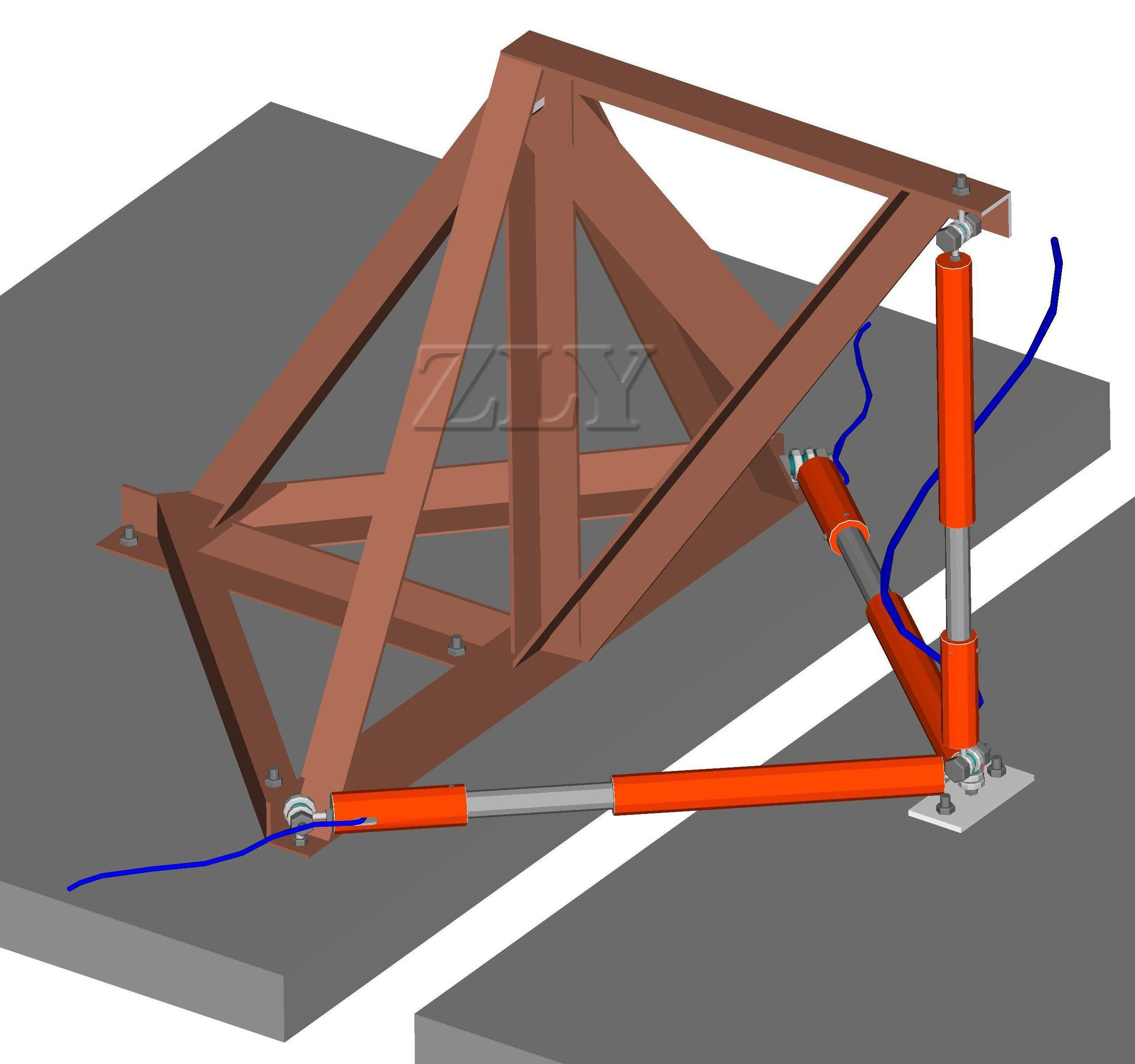ZLY-V7000G型振弦式内装三向测缝计广泛应用于混凝土面板堆石坝周边缝的位移观测。它由一个安装架和三个位移传感器组成,三个位移计中有一个专测垂直方向位移,另二只构成平行于安装面边长为800mm的等边三形,用来测量水平方向的位移量,也广泛被用于需同时测量X、Y、Z三个方向的相对位移变化量的仪器。仪器由安装支架、三个不同方向的位移传感器、传输电缆等组成。